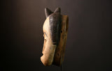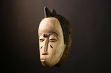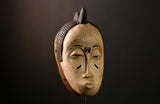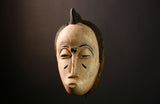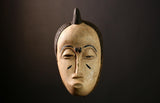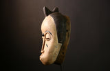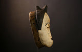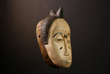 Bring a touch of African culture to your home with this beautiful Guro wooden mask. Handmade in Côte d'Ivoire, this vintage/antique mask features a tribal art style that will add a unique touch to any wall decor. The mask is proven to be an original piece and is not modified. This African mask is perfect for decorative/home decor use, and its wall hanging feature makes it easy to display in any room. The mask is made from African wood and has a rich cultural history associated with it. Add a touch of elegance and tribal tradition to your home with this stunning piece.