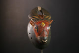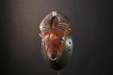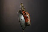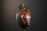 African Mask Handmade Baule Horned , Unique Wall Art Decor, Tribal Sculpture for Home, Cultural Collectible Piece for Decoration-G3767