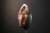 Introducing African Mask, known as the Kpelie, which translates to "the face that jumps." This stunning piece celebrates the vibrant cultural heritage of the Senufo people and plays a crucial role in the initiation ceremonies of the Poro masks tradition. Crafted with precision, each Kpelie mask is designed to embody the spirit of a young masked woman, showcasing both grace and strength. This African mask features unique attributes, including a prominent frontal bump that symbolizes femininity, slit-shaped eyes that evoke intrigue, and an elongated nose that enhances its beauty. The striking frontal hair crest represents the dreams and guidance of spirits from the bush, which are believed to impart wisdom to the community during significant rituals. Imagine displaying this extraordinary African mask as a focal point in your home, where it will draw the eye and inspire conversations about its rich history and cultural importance. Not only does it add depth to your decor, but it also serves as a storytelling piece, reflecting the traditions of the Senufo people. As a portrait mask, this Kpelie belongs to a distinguished group of masks that honor revered individuals or ancestors during ceremonial dances known as Mblo. Don’t miss the chance to own this significant piece of African artistry—order now to enrich your collection!