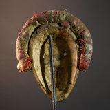 This powerful mask comes from the Dan people of Côte d’Ivoire/Liberia, used during ceremonies that honor forest spirits, guide initiates, and maintain social order. Known as a Deangle or Gle mask, it often appears in dances meant to teach values, protect the community, or entertain through masked storytelling. Cowries reflect spiritual wealth and divine connection.