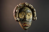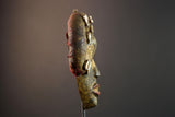 African mask wall art, Dan tribal face, cowrie shell ritual mask, carved wood mask decor, ancestral forest spirit, ethnic wall hanging-G5382