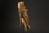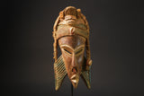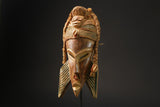 Robert mask is inspired by the customs mask and beliefs of Ghana’s Ashanti mask people for the design of this original mask. He carves the sese wood mask by hand featuring painted details. Magnificently detailed embossed aluminium represent the Ashanti's traditional scarification patterns on the face