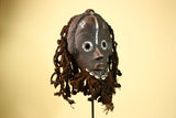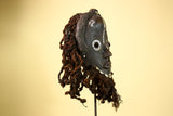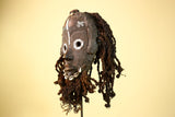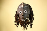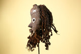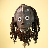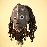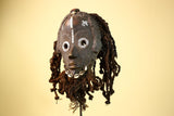 African Vintage Dan Mask with Metal Eyes Cowrie Braided Hair Tribal Art -G6002