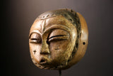 Antique African Eket Mask Carved Wooden Tribal Art Collectible Wall Hanging Ethnic Ceremonial Face Decor-5013